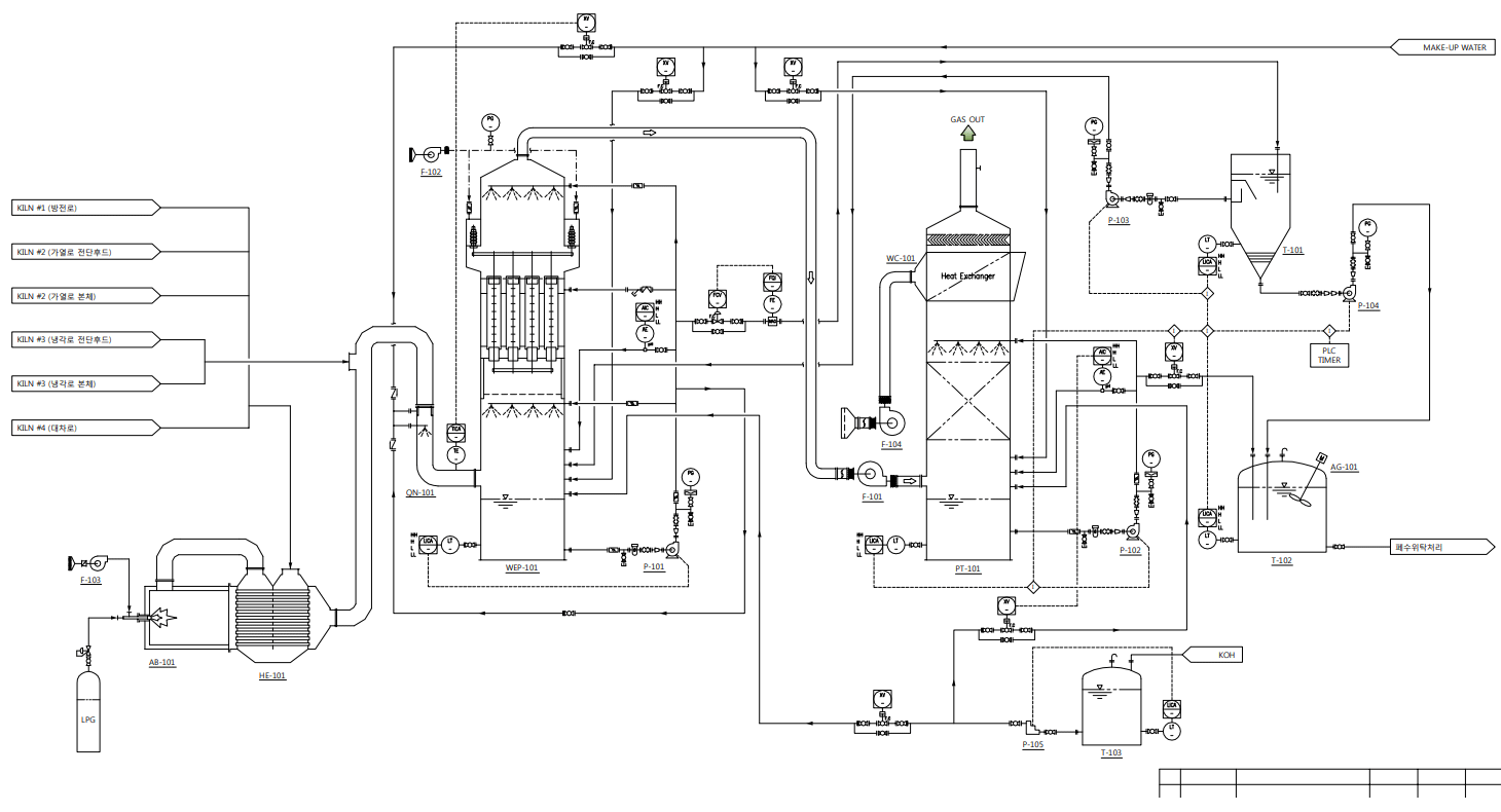 - 2 열산화된 가스는 KOH 또는 NaOH의 Packing Zone을 거쳐 수처리 되고, 이후 남은 입자상의 오염물질(dust & fume)등은 습식전기집진기를 이용하여 처리한다.